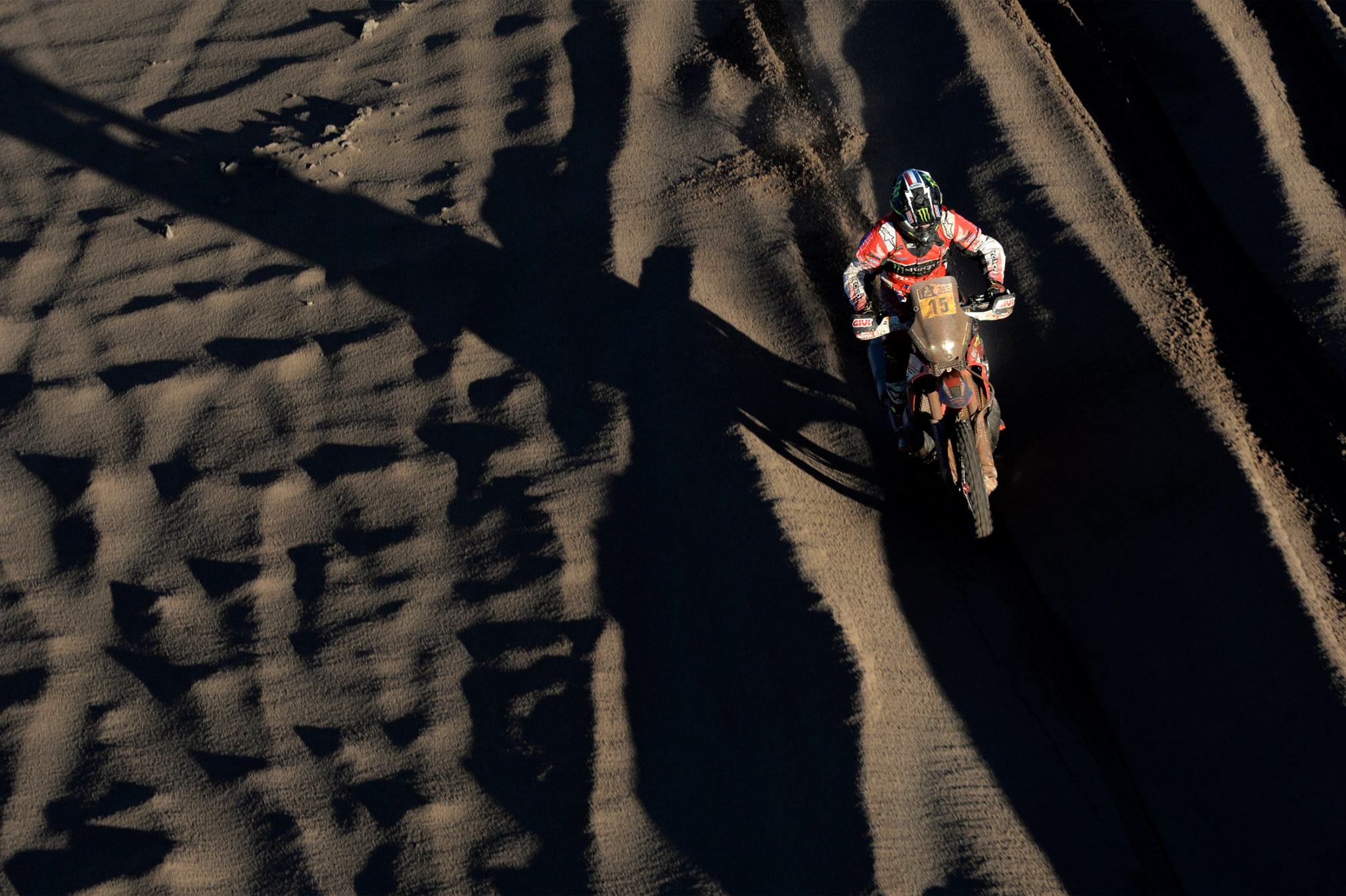 Michel Metge se v cíli radoval ze svého prvního etapového vítězství, jenže po chvíli zjistil, že minul jeden bod na trati a penalizace ho okamžitě posunula na sedmou pozici. Joan Barreda tak získal třetí etapové vítězství. I on má ovšem na kontě penalizaci, a tak místo vedení v tabulce okupuje pátou příčku. Na čele neohroženě stále Sam Sunderland. Ze soutěže dnes odstoupil dosud druhý Chilan Pablo Quintanilla, který při pádu utrpěl otřes mozku.