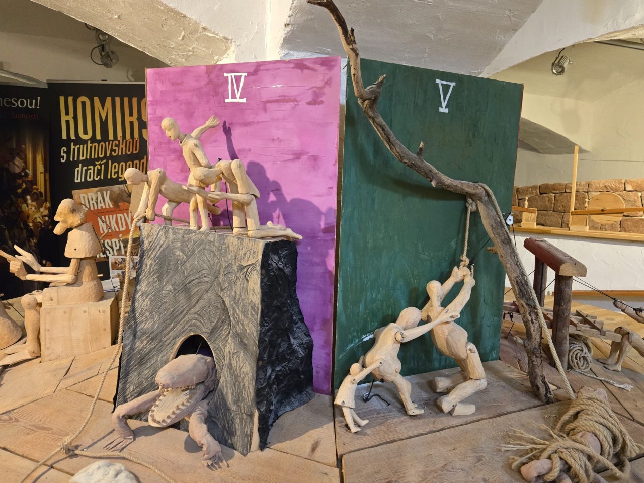 Ale draka není třeba se bát. V trutnovské Galerii Draka už mají strachy dávno vyřešené hravým způsobem. Galerie je prodchnutá vůní lipového dřeva z vyprávěcího kolotoče s loutkami. Ten je možné roztočit kličkou, rozhýbat tak na něm umístěné hračky a poslouchat, co se děje v „dračí“ alchymii.