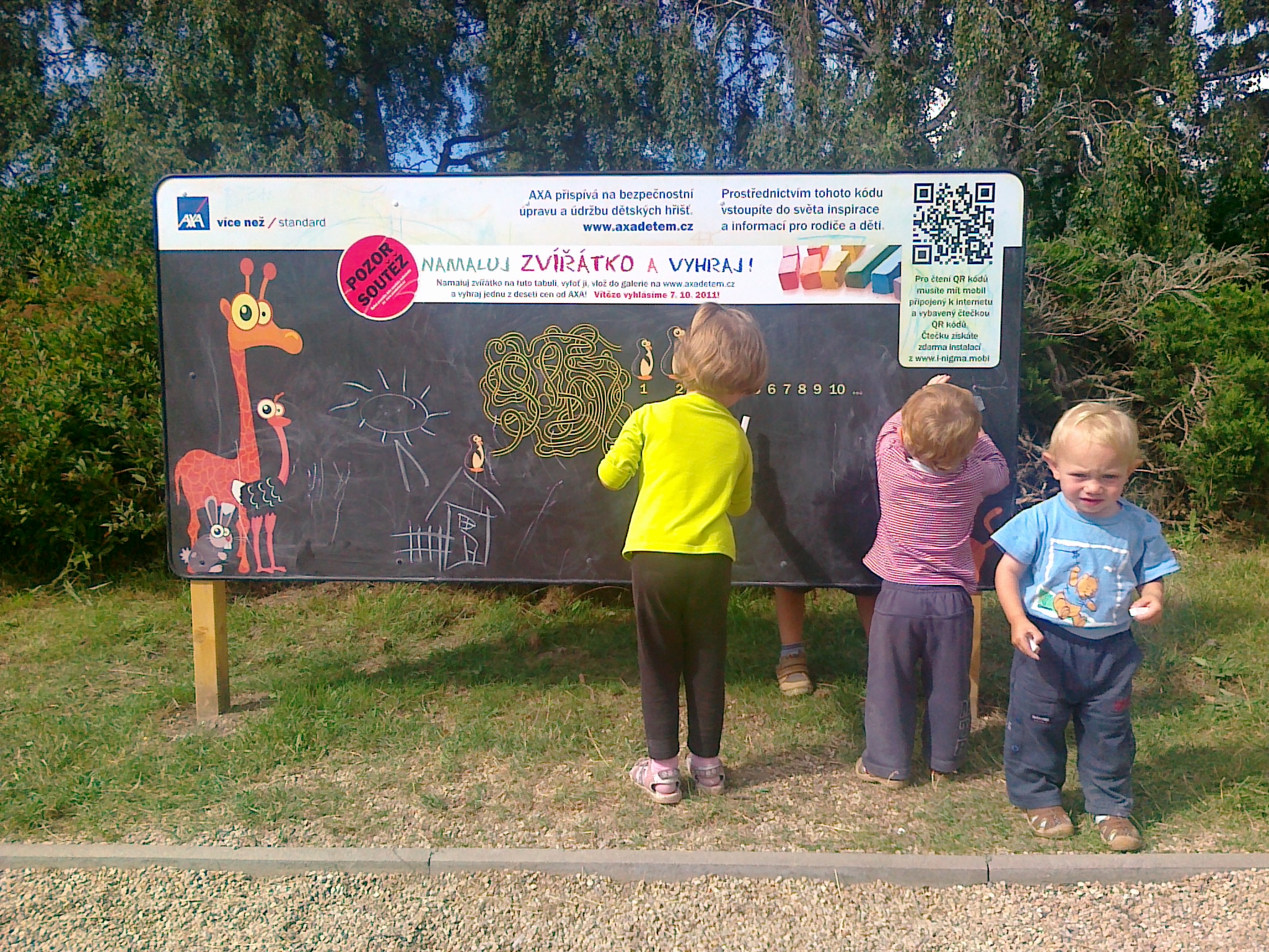 Dětská hřiště v Třebíči mají novinku. Na všech hřištích ve městě se objevily tzv. kreslící tabule, které vypadají podobně jako školní tabule, jediný rozdíl je, že jsou zdobené.