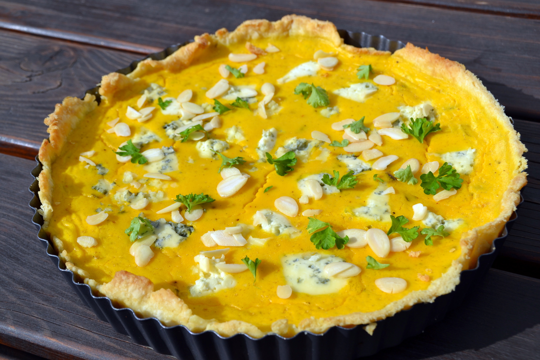 Postup je podobný jako u sladkých koláčů, než jej upečeme, budeme hodně šlehat a míchat: „To se celé vyšlehá, má to konzistenci jako vajíčka, je to hustá náplň oranžové barvy. Vylije se do upečeného těsta, posype gorgonzolou a dá se upéct na třicet minut při teplotě 170 stupňů,“ radí Pavel Kremláček.
