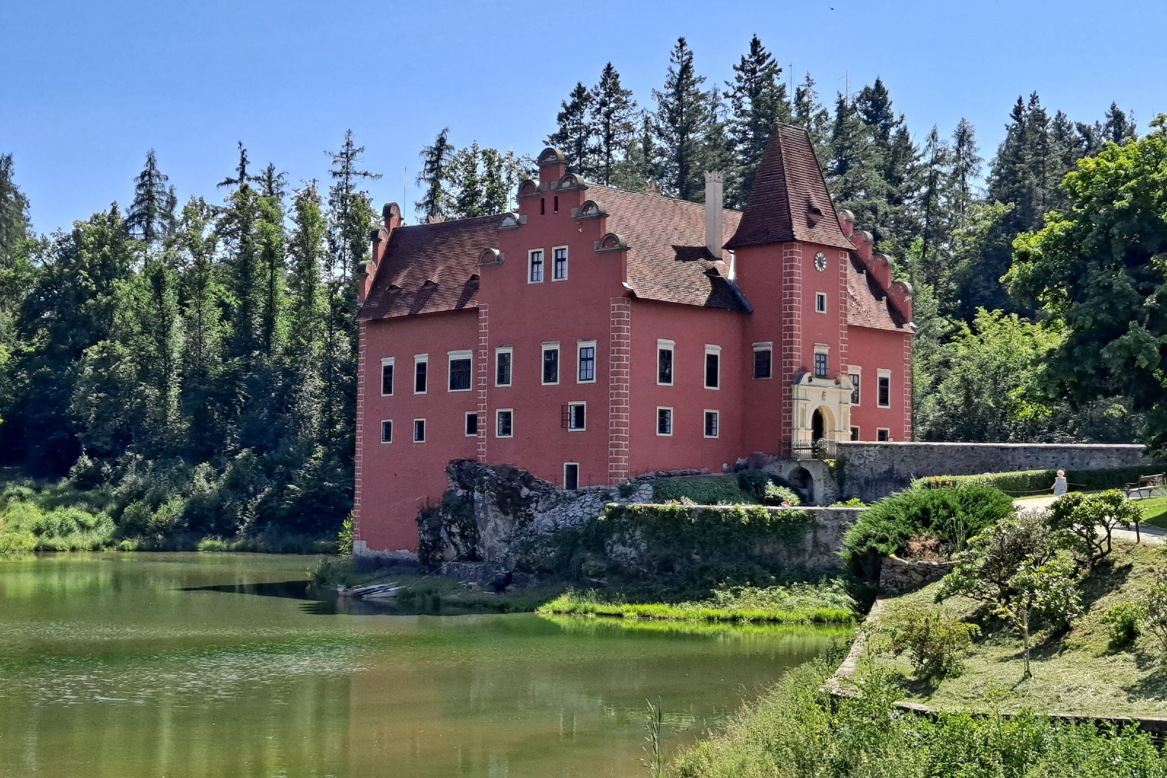 Malebná Červená Lhota na jihu Čech je pohádkovým zámkem uprostřed vodní hladiny