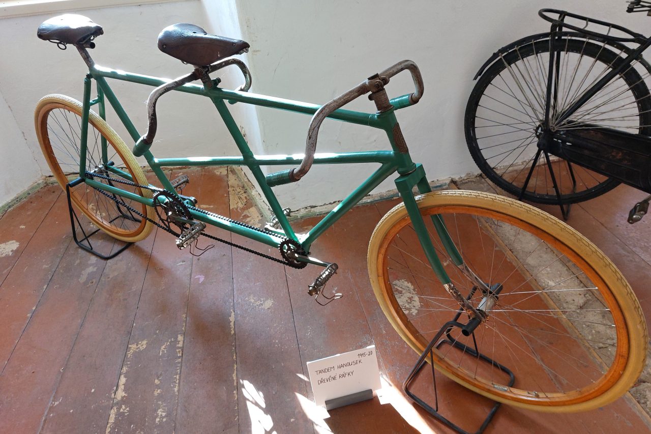 Mezi speciální stroje je možné zařadit dvoujkolo s dřevěnými ráfky, které sloužilo jako vodicí stroj pro závodníky na dráze. Velmi zajímavé je i kolo, které využívala armáda, a které má spoustu úložných prostor. „Když se potřebovali přepravit, tak na to naložili výstroj," vysvětluje kastelán. Další kola postupně představují zástupce dalších let, takže jsou k vidění i první kola značky Eska, Sobi nebo Pionýr, na kterých už mnozí z nás jezdili.