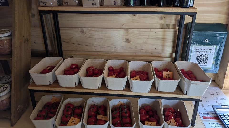 Zákazník obsluhu nepotřebuje. Když si vybere, na přiložené kalkulačce si spočítá cenu a buď ji vhodí do kasičky v hotovosti, nebo použije vystavený QR kód na platbu na účet. „Zároveň tady máme systém zálohovaných sklenic. Takže si zároveň při tom nákupu odečtete cenu sklenice u produktu, který jste si koupila v předešlém nákupu.“ A jestli jsou lidé při placení poctiví? „Já musím říct, že jo, že se nám nestává, aby někdo něco odnesl. A já mám přístup takový, že věřím v dobro,“ uzavírá paní Aneta i s pozvánkou přímo do zahrady u domu. „Máme certifikovanou přírodní zahradu, máme tam koupací biotop, letos jsme postavili na apidomek pro léčivé pobyty nad včelami. Takže lidi se klidně můžou jít podívat, pokud je to zajímá.“