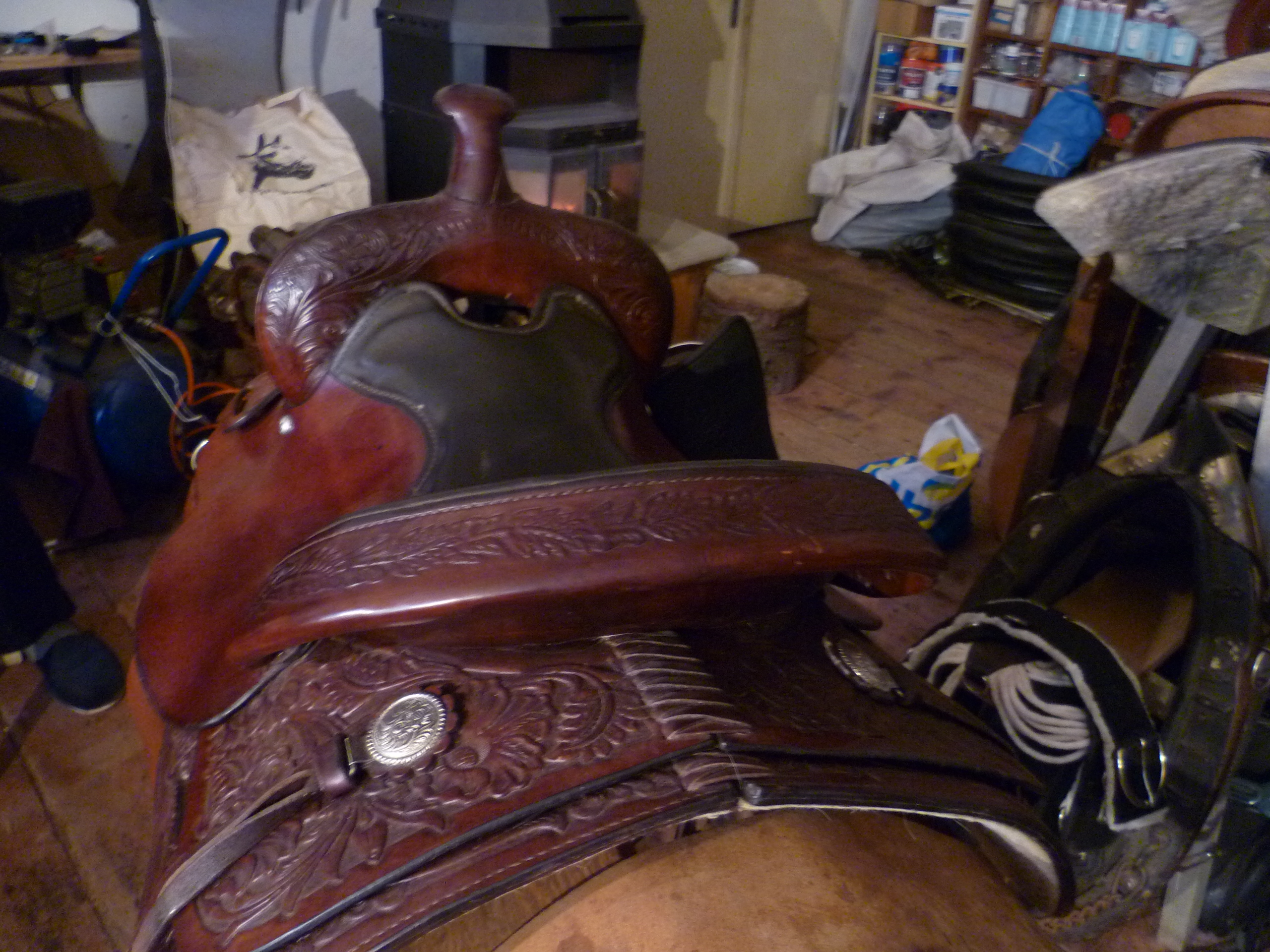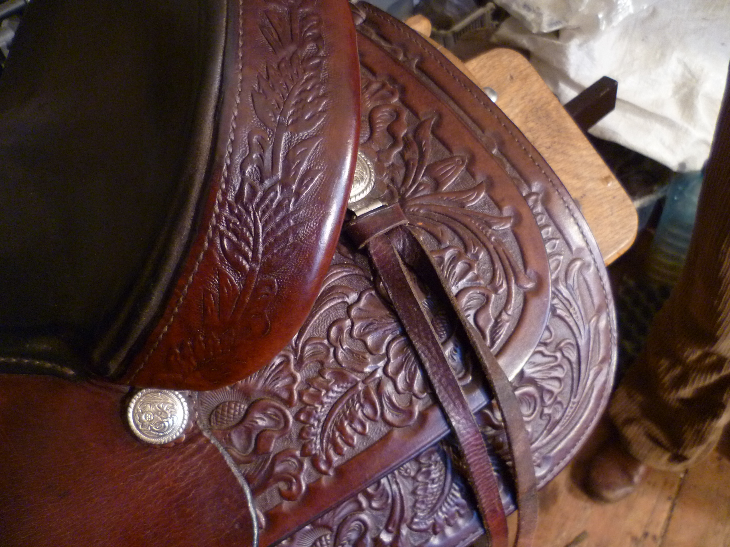 Westernové sedlo je mnohem robustnější, než to sportovní. Daniela ukazuje na nejtypičtější část: „To je tady ta přední rozsocha s hruškou. Když ten kovboj chytal krávu na ranči, hodil laso a konec omotal o tu hrušku,“ popisuje. „U anglického sedla jsou tenké řemeny, na kterých visí třmeny, u westernového je široký pás, protože kovbojové na tom koni seděli celé dny,“ vysvětluje Daniela další rozdíl.